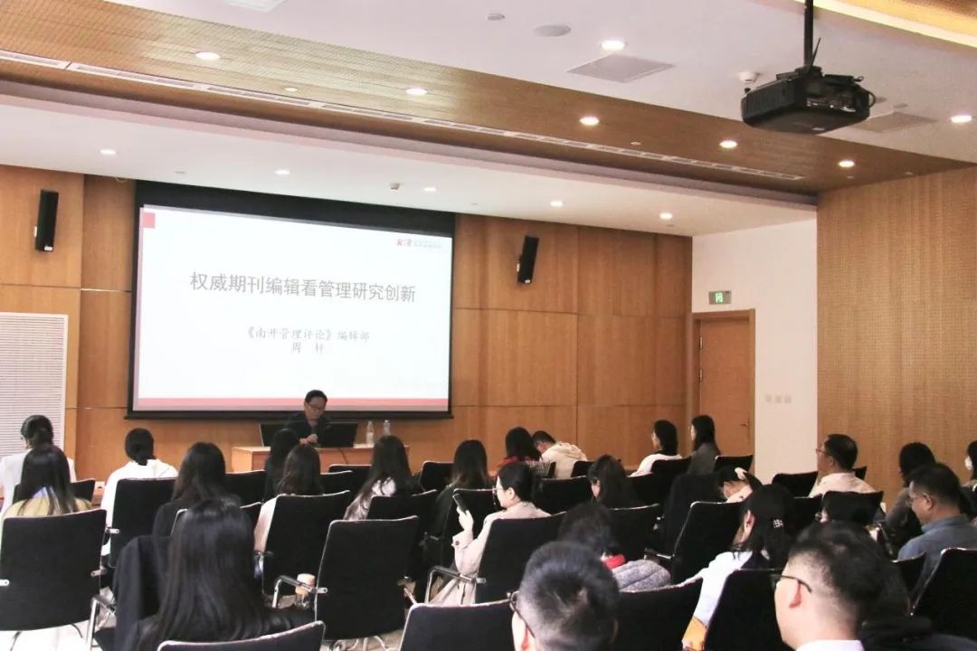 为进一步增强师生高水平期刊论文的发表能力、高层次科研项目的申报和研究水平,蜜桃视频 将持续、高质量地开展“烙金讲坛”系列学术讲座。10月18日下午,蜜桃视频 顺利举办“烙金讲坛”系列学术讲座第1讲。本次讲座邀请《南开管理评论》副编审、编辑部主任周轩博士做了题为“权威期刊编辑看管理研究创新”的专题讲座。本次讲座由学院院长助理、人力资源开发与人才发展系系主任苗仁涛教授主持,我院师生参与了本次讲座。