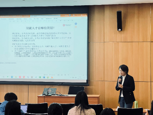 人才学系党支部书记、北京经济社会发展政策研究基副主任陈书洁副教授总结发言。她对本次学术报告进行了点评与总结,认为本期分享激发了人才学系同学们的兴趣和思考。同时,本着发展研究的角度,她指出了双碳人才的人才类型归属尚不尽明确的问题,并分享了有关国家战略人才力量的提法。最后,她表示,人才学系的建设与发展得到学院各系所的关心和支持。“人才月谈”活动旨在促进人才学的学术交流、科研合作与人才培养,鼓励人才学系师生充分利用好这一平台了解学科前沿思想、激发人才学研究兴趣、不断探索人才学相关研究方向,希望大家不断提升学术科研能力,共同推动人才学系的建设和发展。