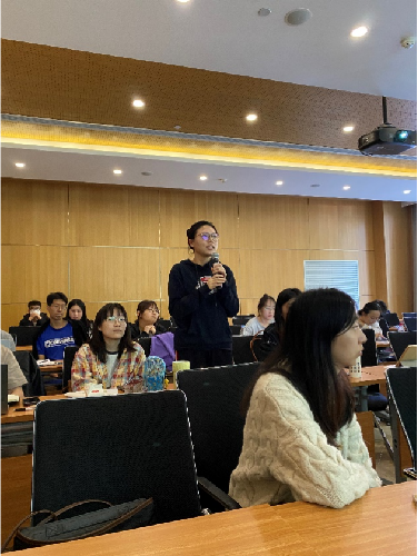 人才学系教师杨之旭点评并主持师生互动环节。他指出研究内容完整、深入,具有现实意义。人才学系硕士、博士研究生们踊跃发言,从双碳人才的分类与归类标准、培养路径、吸引与引进政策举措、胜任特征建模有效性等问题与人才学系教师们展开深入探讨和交流。