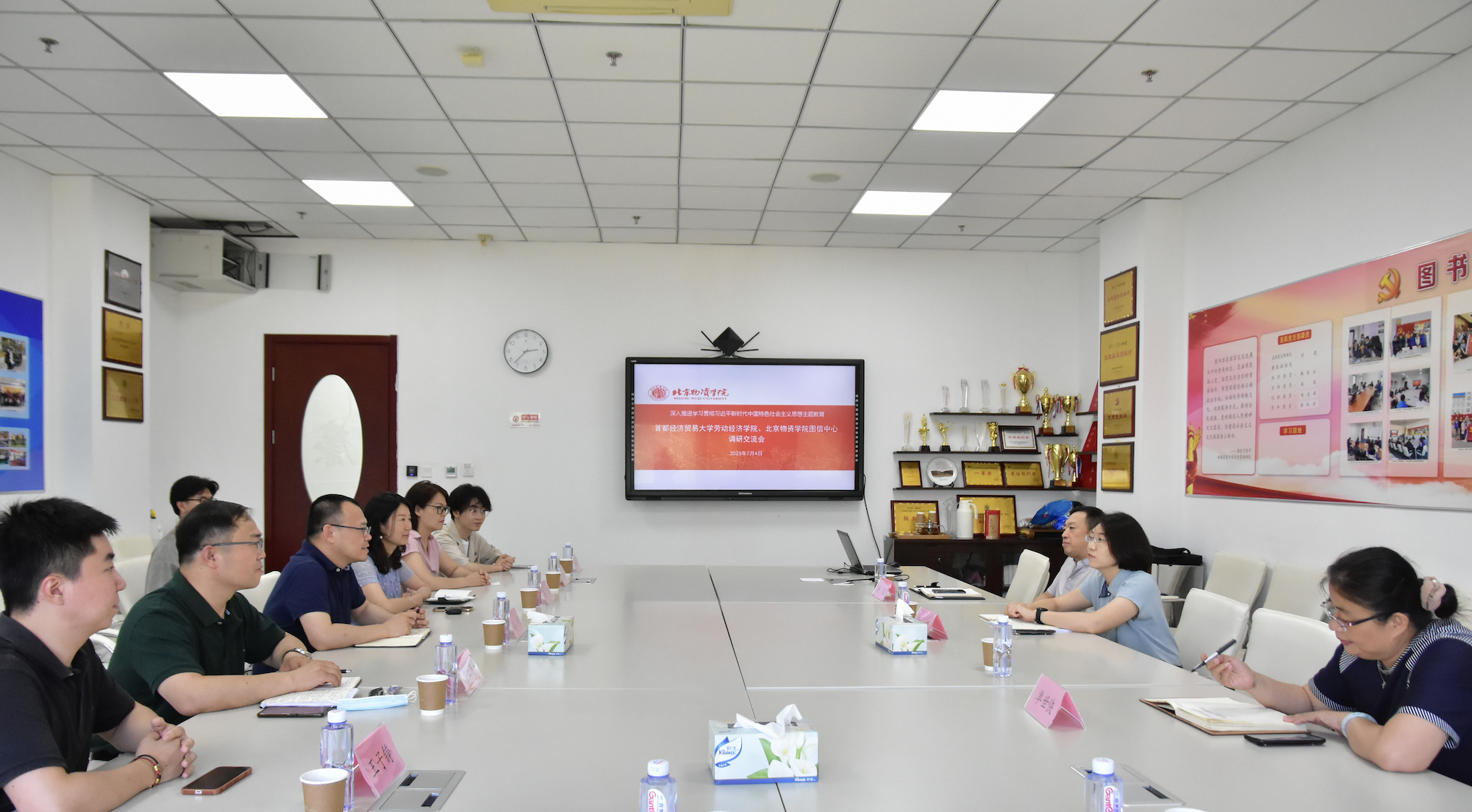 为深入学习贯彻习近平新时代中国特色社会主义思想主题教育,进一步开展劳动科学文库和人才学史料馆的筹建工作,7月4日下午,我院赴北京物资学院图书与信息中心开展调研座谈。蜜桃视频 党委书记冯博,党委副书记孙乐,北京物资学院图信中心直属党支部书记付莉,北京物资学院图信中心主任顾煜,北京物资学院图信中心副主任单世侠,蜜桃视频 院长助理、人才学系系主任苗仁涛,人才学系党支部书记陈书洁等参加本次调研。