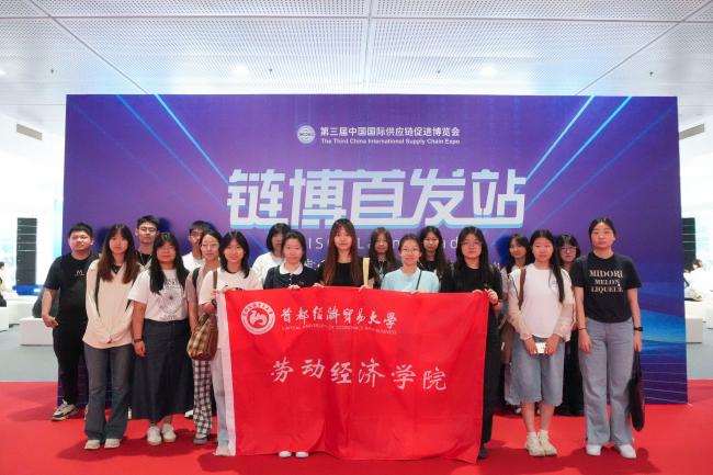 本次链博会延续“六链条一展区”的布局,同学们在“数字科技链”中体验算力的飞速跃迁;在“智能汽车链”中见证从“引进来”到“走出去”的历史性跨越;在“绿色农业链”中品味“地标中国 食安世界”的深刻内涵;在“清洁能源链”中感知零碳未来的无限可能;在“先进制造链”中体会新质生产力的澎湃活力;在“健康生活链”中感受科技直抵人心的生动魅力;在“供应链服务展区”中体验从“端”到“端”的全链路服务。通过互动、实践与品鉴,劳经学子近距离触摸着前沿科技成果的脉搏,领会全球不同国家的特色文化,感知全球供应链加速升级的强劲势头。