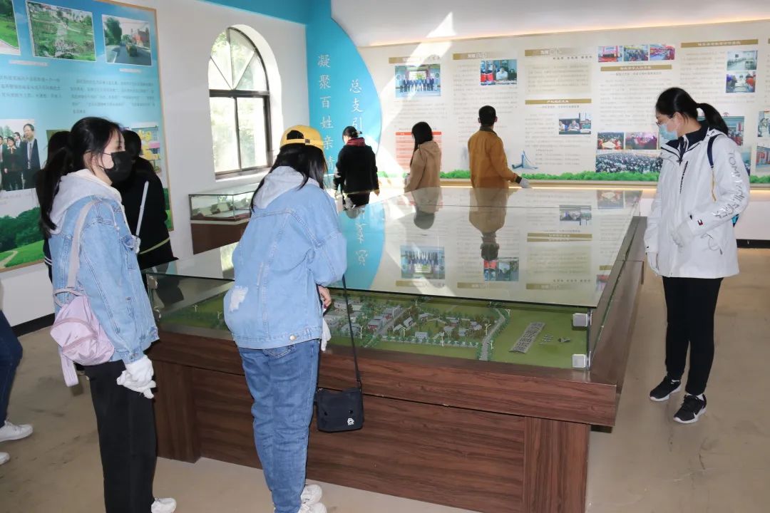 本次活动中,工作人员带领大家参观了留民营村史馆和农具馆,深入了解“中国生态农业第一村”留民营村筚路蓝缕的发展历程。同学们对留民营村产生了浓厚的兴趣,围在沙盘周边聆听工作人员绘声绘色地讲述留民营村的规划发展,感受劳动如何创造出了留民营村现在的美好生活。