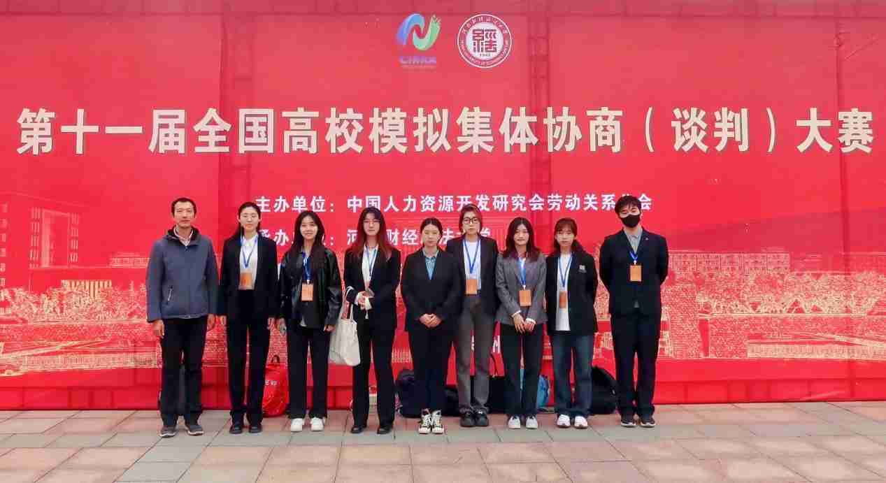 经过激烈角逐,我校劳方队伍(潘瑾、徐向前、常润林、徐雨珊)斩获团队一等奖、最佳团队奖,资方队伍(吕尚泽、霍然、刘姝琪、陈思霏)荣获团队三等奖,潘瑾、刘姝琪、常润林同学获评优秀谈判员奖,盛龙飞老师获评优秀指导教师一等奖。