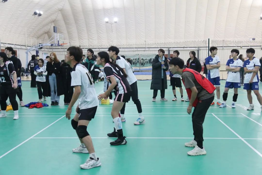 12月5日晚八点,气膜馆人声鼎沸。加油声、助威声、喝彩声交织成一片,将整个场馆的热烈气氛推向高潮。劳经一队开局选择稳扎稳打,几个来回后,渐入佳境。劳经队员默契配合,各具特色的发球,来势汹汹的进攻以及铜墙铁壁般的防守,使双方比分差逐渐拉开,劳经胜利在望!第二局队员们超常发挥,展现出强劲实力,连续几球得分,锐不可当。场下劳经学子表现出强烈的热情,震耳欲聋的加油声响彻场馆,在场的所有人都深切感受到属于劳经人的热血气魄。最后,队长刘恋得分带领劳经学院排球队获得本场比赛的胜利,最终取得本次大赛的冠军。