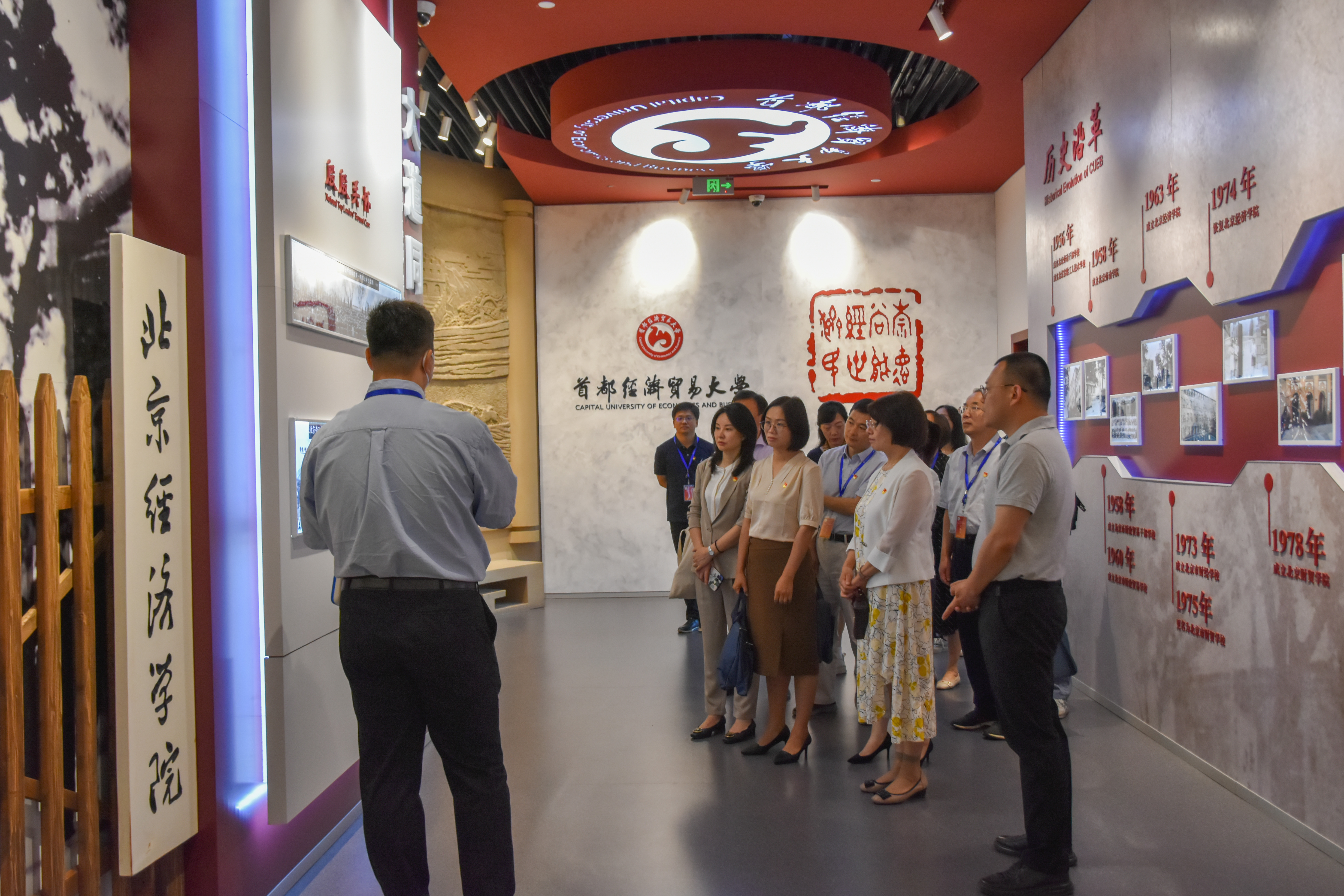 教育部直属机关党校第十五期处级党员干部理论进修班成员在座谈调研前参观了校史馆,了解我校历史与建设情况。