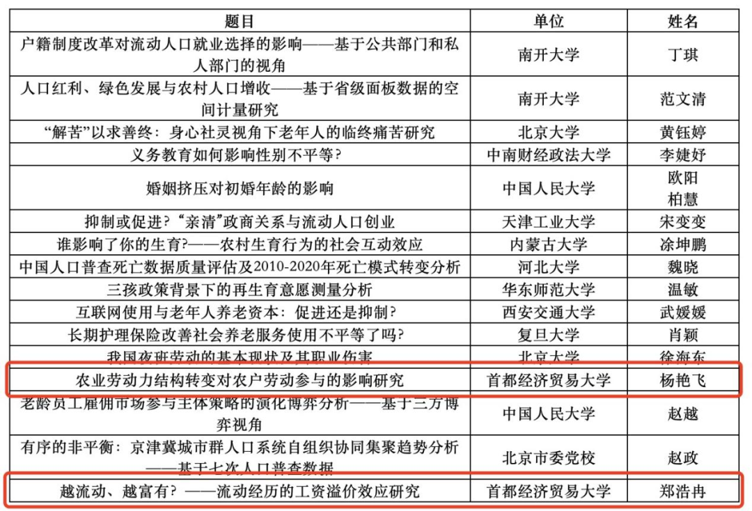6月17日,第十五届全国人口与发展研究生论坛在我校召开。本届论坛由中国人口学会青年人口学者专业委员会、蜜桃视频 人口经济研究所联合举办,蜜桃视频 承办。我院8名研究生参会,并在大会和分论坛发言。经过专家组评审,6篇论文获得由中国人口学会颁发的优秀论文奖,其中,万琳琳获一等奖;杨艳飞、郑浩冉获二等奖;李玉茹、刘志丽、张馨予获三等奖。他们的指导老师是童玉芬、茅倬彦、盛亦男、张杉杉、曾雪婷等。