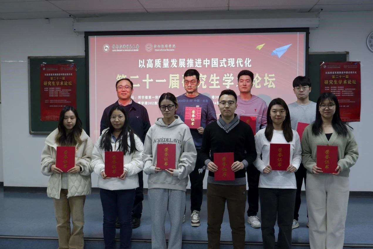 苗仁涛宣布获奖论文名单,并为论坛做总结。他表示,参加学术论坛能够帮助同学们加深对专业知识和学术写作的了解,希望同学们在未来不断拓宽知识边界,深化专业造诣,在学术研究中持之以恒,不畏艰难,以严谨的态度和创新的思维,攀登一座又一座学术高峰。更希望同学们将个人理想融入国家发展大局,以实际行动践行高质量发展的时代使命,为推动中国式现代化进程贡献青春力量。