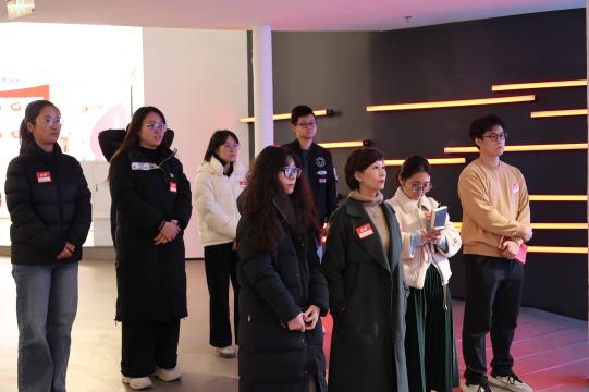 师生代表参观了以“数智供应链技术与服务”为主线的京东企业展厅展,全面了解京东在零售、科技、物流、健康、工业、产发、保险等业务板块的前沿技术布局与产业实践案例,特别是人工智能、大模型、自动化仓储系统等在提升用户体验、优化供应链效率方面的创新应用。