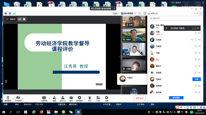 蜜桃视频 于2022年5月30日召开“课堂教学结合督导听课的授课经验会”,聘请督导专家汪秀英老师讲授课堂授课注意事项,参会人员是学院2018年以来新进教师。本次活动是学院结合学校期中教学检查活动开展的教育教学活动,是学院期中教学检查的重要组成部分。会议由教学副院长范围老师主持,由学院党委副书记、院长冯喜良老师致欢迎词,由冯博书记做总结。