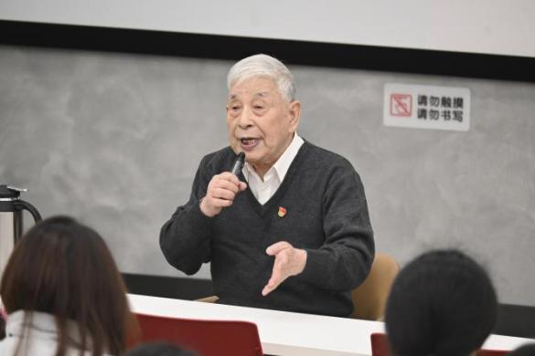 观看纪录片后,学院党委邀请校离退休人员党委离休党支部书记李召朝同志以“践行党的宗旨,做合格党员”为题讲授专题党课。李召朝同志是抗美援朝战士、我校离休教师,曾随着志愿军第47军141师进入朝鲜,2020年获“入朝作战70周年纪念章”。他结合自己湘西剿匪、抗美援朝的真实革命经历,沿着“如何成为一名合格的共产党员”的主要脉络,带领学员从故事中体悟党的初心与信念。他希望同学们坚定理想信念,扛起历史责任。