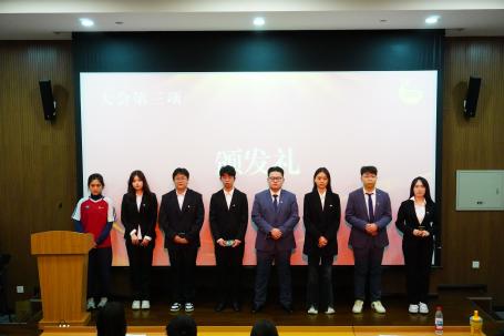 院团委组织部副部长尤圣凯宣读2025年下半年新发展团员名单。学院21名先进青年凭借坚定的信念与优异的表现,光荣加入中国共产主义青年团。