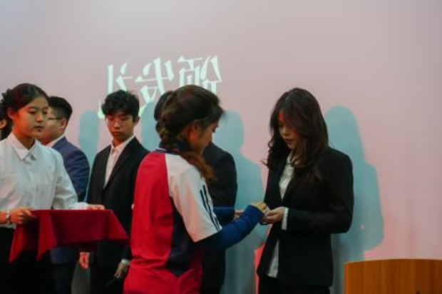 程宇新、罗晨歌为新团员颁发团徽徽章与团员证。熠熠生辉的徽章象征着责任与使命,崭新的团员证承载着期望与担当,激励新团员在成长的路上稳步前行。