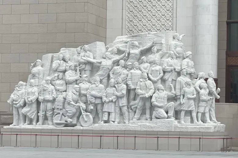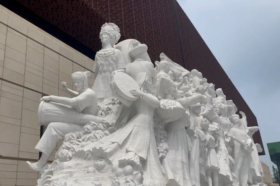 雕塑《追梦》中,73位人物形象融入主体之中,形成团结一致、阔步前行的恢宏阵势。体现了全国各族人民在中国共产党的团结带领下,满怀对建设美好国家、美好社会、美好生活向往的自豪,为了实现民族复兴,在百年接续奋斗历程中坚定中国道路、弘扬中国精神、凝聚中国力量,坚毅前行的豪迈气概。
