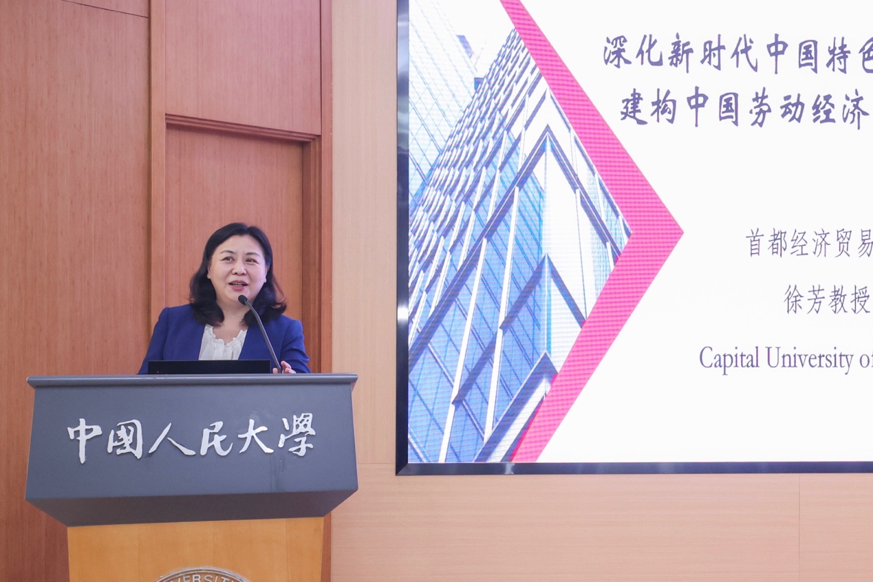 徐芳以“深化新时代中国特色社会主义劳动科学,建构中国劳动经济管理自主知识体系”为题作主旨发言。她在发言中指出,建构中国劳动经济管理自主知识体系是新时代劳动科学回答好中国之问、世界之问、人民之问、时代之问的必然要求。要讲好中国劳动科学领域发展背后的原理、道理、学理,讲好中国故事,为学术界贡献中国智慧和中国方案。