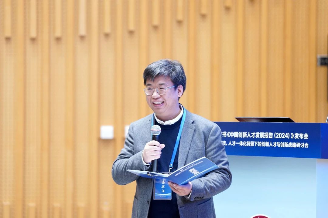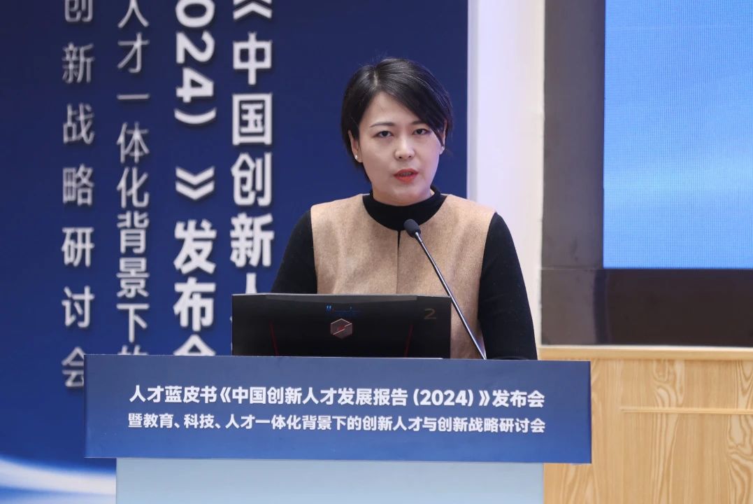 何勤从《中国创新人才发展报告(2024)》蓝皮书的理论背景和现实需求出发,详细阐述了报告的整体逻辑和谋篇布局,阐释了集数据调查、理性分析与实践案例于一体的报告特色。她以总报告为依托,分享了中国式现代化创新人才支撑、科技人才评价、创新高地建设、人工智能与科技人才、数字能力与人才供需、区域经验探索等分报告精彩论点,指明了未来需要持续关注的重点领域。