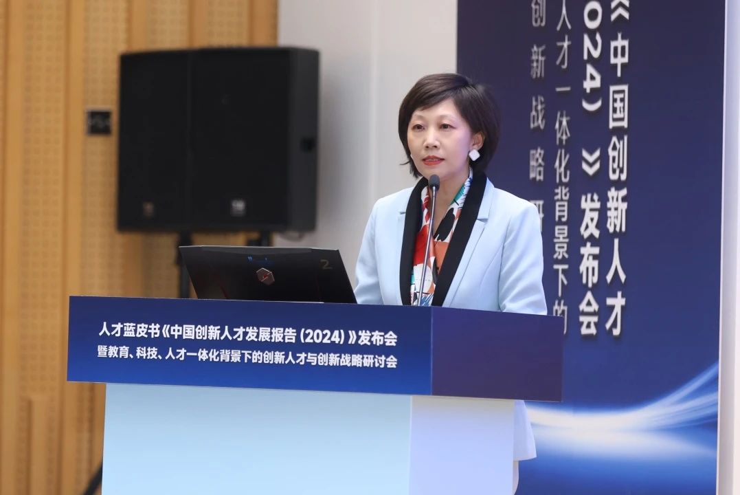 徐芳在主持时提到,《中国创新人才发展报告(2024):教育、科技、人才一体化背景下的创新人才与创新战略》是在去年发布的《中国创新人才发展报告(2023):科技创新人才与创新高地建设》主题基础上,聚焦国家高度关注的重大问题,组织专家团队围绕“教育、科技、人才一体化背景下的创新人才与创新战略”专题研究编写而成。该部蓝皮书以“战略引领、教育发展、数字科技、区域探索”为主线,对基于战略性、前瞻性国家科技长远需求的创新人才与群体进行分析,构建创新人才发展指数,揭示了教育、科技、人才统筹推进的创新人才发展规律,以及一体化改革的重点领域,特别凝练总结了各区域在推进教育、科技、人才融合发展的创新战略、生动实践及经验启示,旨在为新时代教育强国、科技强国、人才强国建设提供宝贵的理论依据和政策建议。
