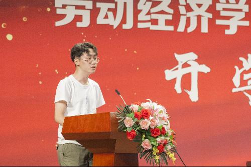 2016级人力资源管理班张潇作为在校生代表在典礼上分享了自己在学习、学术竞赛以及学生工作等方面的经验,呼吁新生们要勇担责任,学会热爱;要摒弃浮躁,坚守初心;要牢记“崇德尚能,经世济民”的校训,追求卓越的精神和济世报国的情怀。