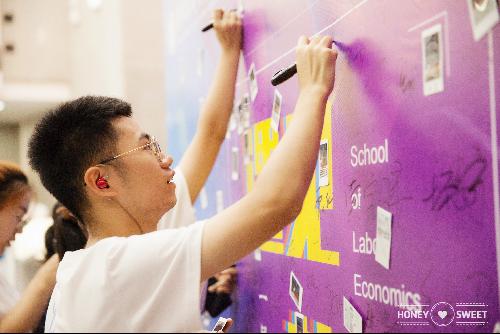 300余名2019级本硕博新生依次签到、拍摄笑脸照片,成为了这个初秋时节最美的背景图画,同学们纷纷合影留念,寄语未来,许下对未来生活最真诚的祝愿。
