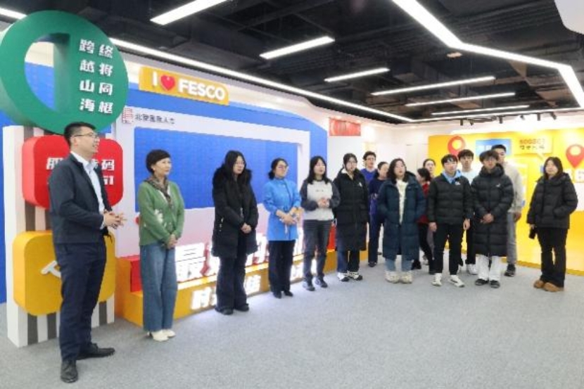 在FESCO蜜桃视频展厅,师生代表系统了解了企业自成立以来在人力资源服务、国际化布局、数字化转型等方面的发展历程与业务架构。FESCO作为中国人力资源服务行业的先行者,在人事服务、招聘外包、国际教育等领域积累了丰富经验,目前服务客户数万家,覆盖全国400余个服务网点。