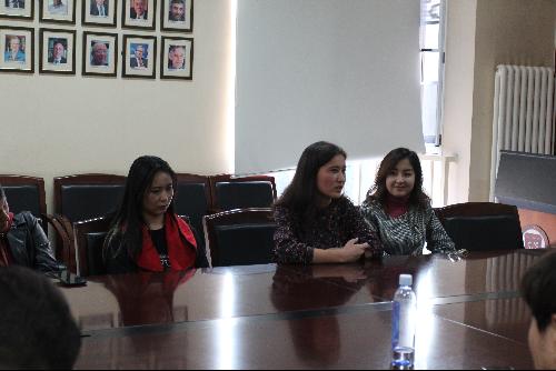 2015级帕沙古丽·艾呢瓦尔通过层层考核,成功保送至我院继续攻读研究生。座谈会上,她向同学们分享了自己的学习经验,鼓励2018级新生们要从入学之初起端正学习态度、注重学习方法,多向老师和同学们请教,提升学业成绩。