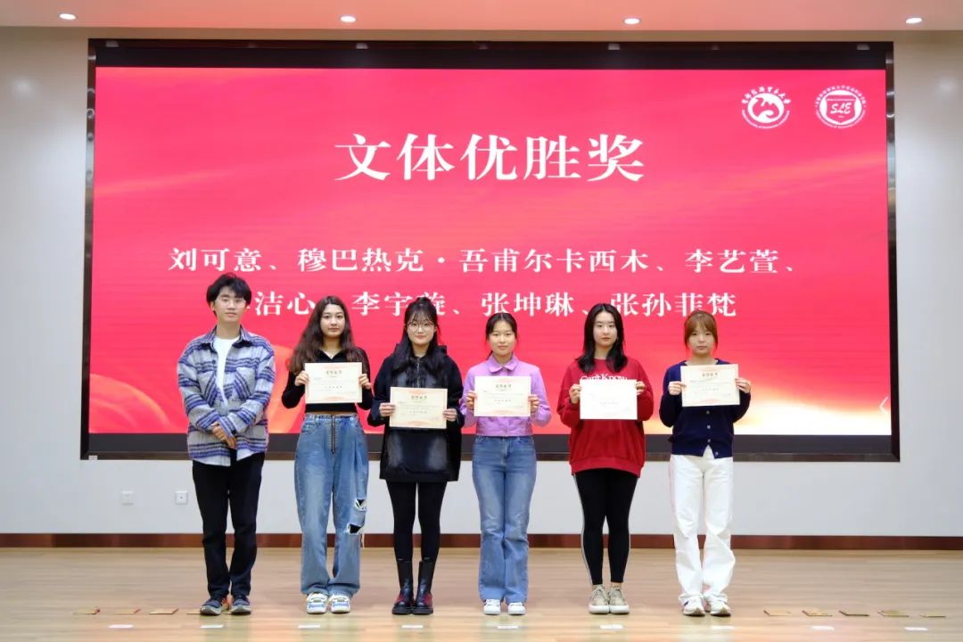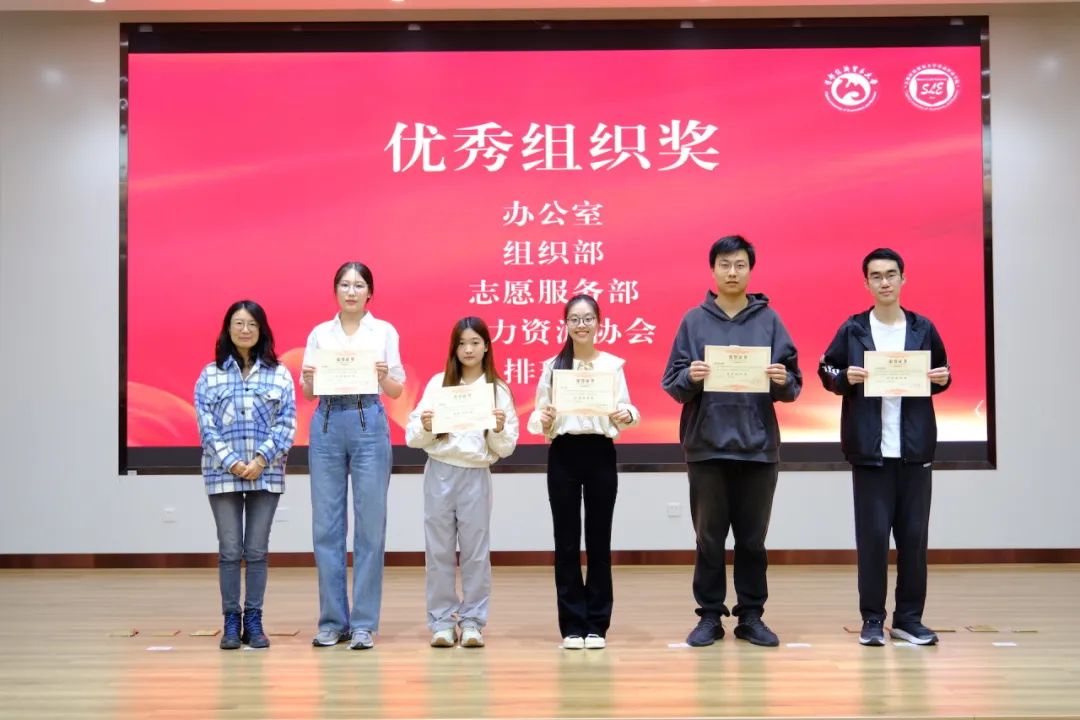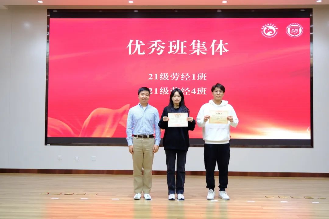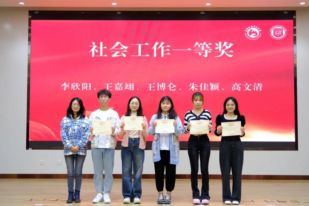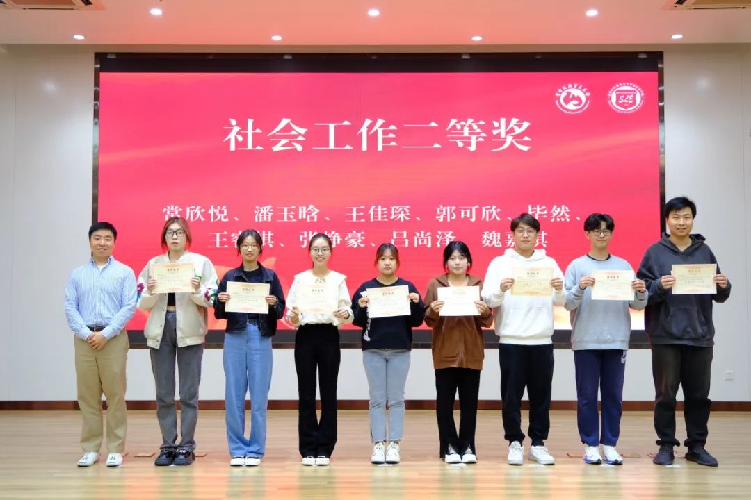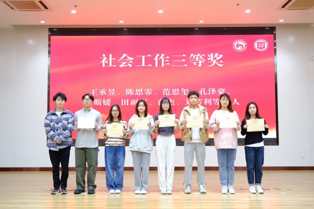 本次颁奖典礼分别为荣获社会工作奖、学术科研奖、文体优胜奖、优秀班集体、最佳新秀班集体、优秀组织奖、优秀志愿者奖、劳经之星、烙金奖章的同学进行表彰,参会领导和老师为获奖代表们颁奖。