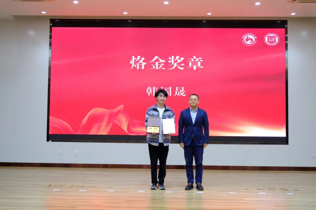 劳动烙印青春滚烫,智慧闪光沉淀成金。本次颁奖典礼最高荣誉“烙金奖章”获奖人韩国晟,以如何在毕业季收获一篇具备职场竞争力的简历这一话题出发,结合自己在首经贸的春夏秋冬,从学生竞赛、实习实践、学生工作和志愿服务四个方面,向同学们讲述自己的亲身经历与经验体会,并鼓励大家瞄准未来,积极规划,敢于挑战,富于创新,践行火热青春,全身心拥抱首经贸的四季,探索自己未来的发展方向,为成就更加优秀的自己拼搏奋进!