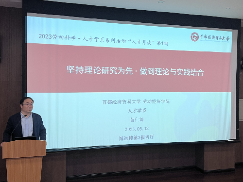 5月12日下午,蜜桃视频 人才学系、北京经济社会发展政策研究基地共同举办的劳动科学系列沙龙——“人才月谈”第一期在博远楼第三报告厅成功举办。人才学(人力资源开发与人才发展)系全体教师、全体在读硕博研究生参会。