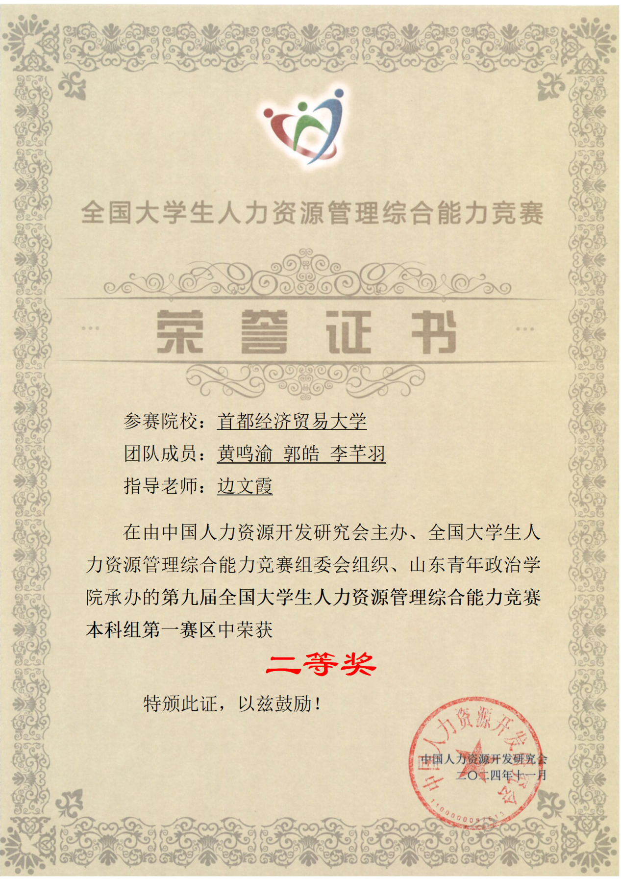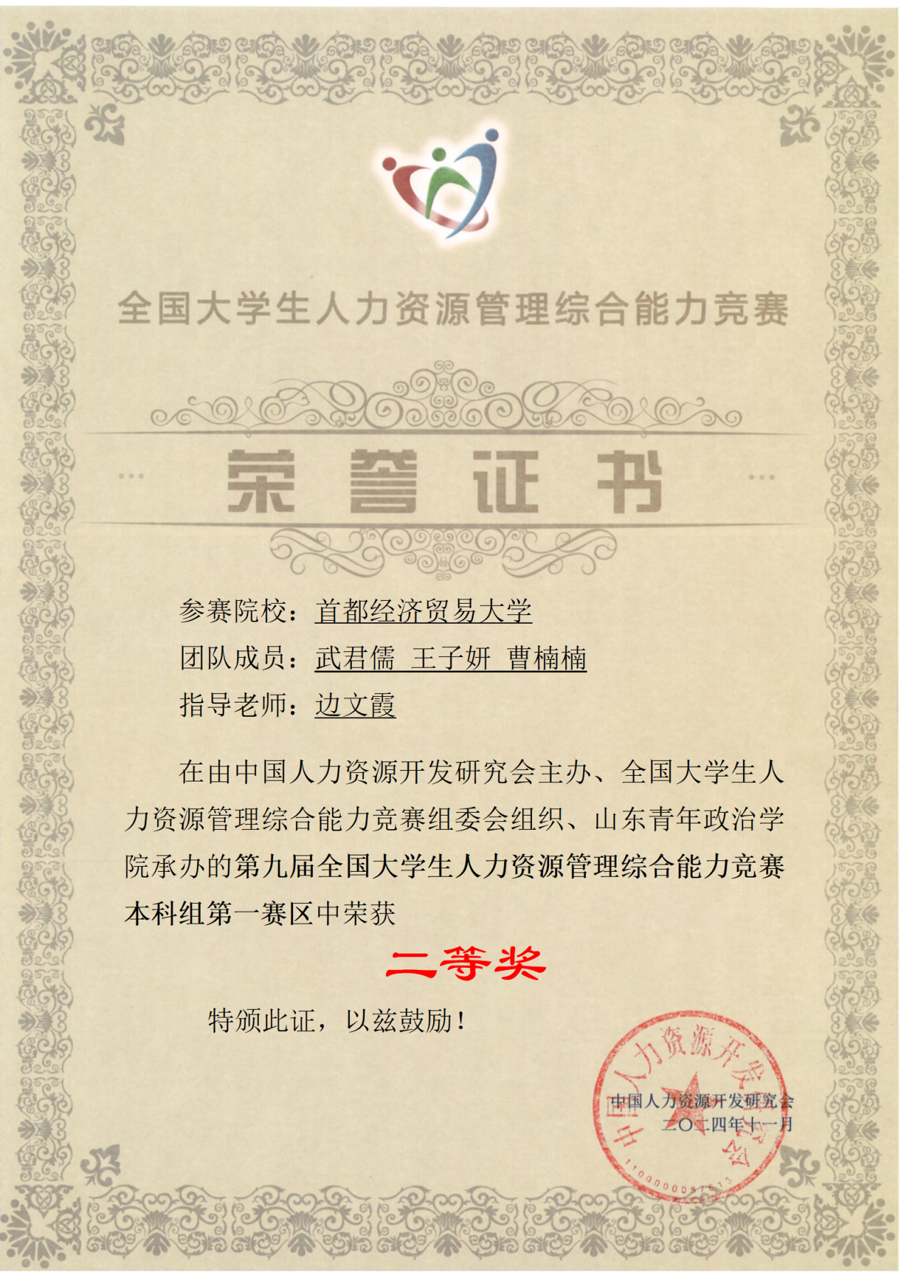 9月13日,第九届全国大学生人力资源管理综合能力竞赛本科组第一赛区赛事顺利落下帷幕。由蜜桃视频 学生组成的我校代表队积极参与,共选拔出五支队伍参加大区赛。经过线上比赛的激烈角逐,两支队伍成功晋级线下的职场模拟比赛,凭借扎实的专业知识和出色的团队协作能力,在比赛中脱颖而出,均荣获二等奖。