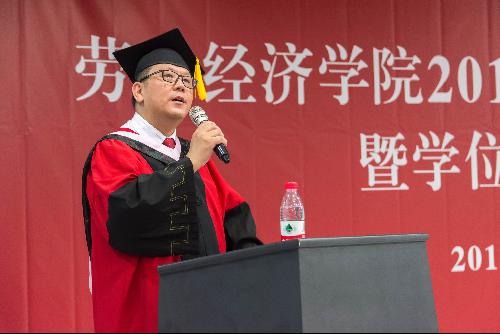 毕业典礼上,吴含带领所有毕业生做“劳经学子宣誓”,“……感恩母校、感恩社会、感恩国家,致力于祖国民族的事业兴盛,实现价值,回报师长。乐学、爱业、报国!”的庄严誓词响彻会场。