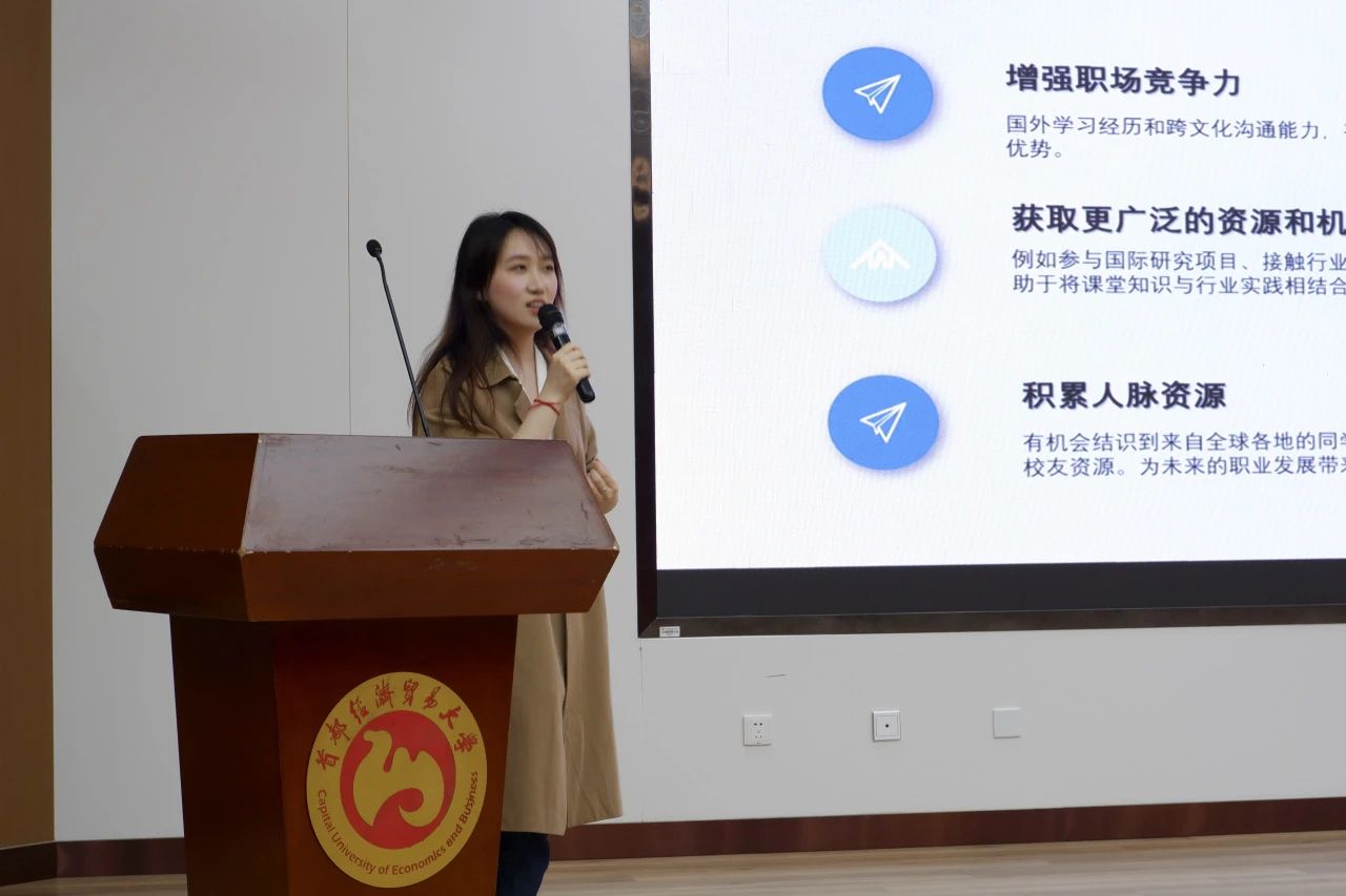 10月30日下午,蜜桃视频 召开“出国留学的抉择与路径”主题启铭课堂暨新生成长课堂,邀请出国留学资深顾问高婧雅老师,英国曼彻斯特大学毕业生、劳经学院2023届毕业生梁思佳为同学们解答出国留学的选择问题,并分享申请院校的经验以及海外生活经历等,助力同学们做好出国留学的道路规划。