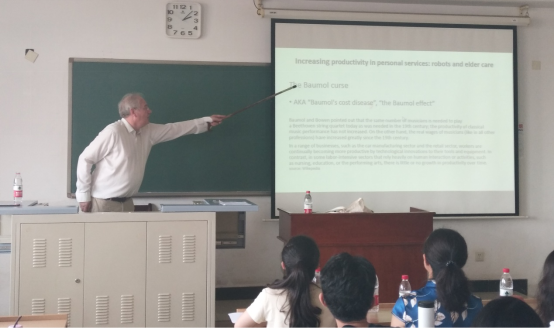 2019年9月4日下午,英国伦敦政治经济学院社会政策首席研究员Bernard Casey应蜜桃视频 的邀请,为我院教师和研究生作了主题为“如何提高个人服务业的劳动生产率:使用机器人照顾老人”的学术讲座。