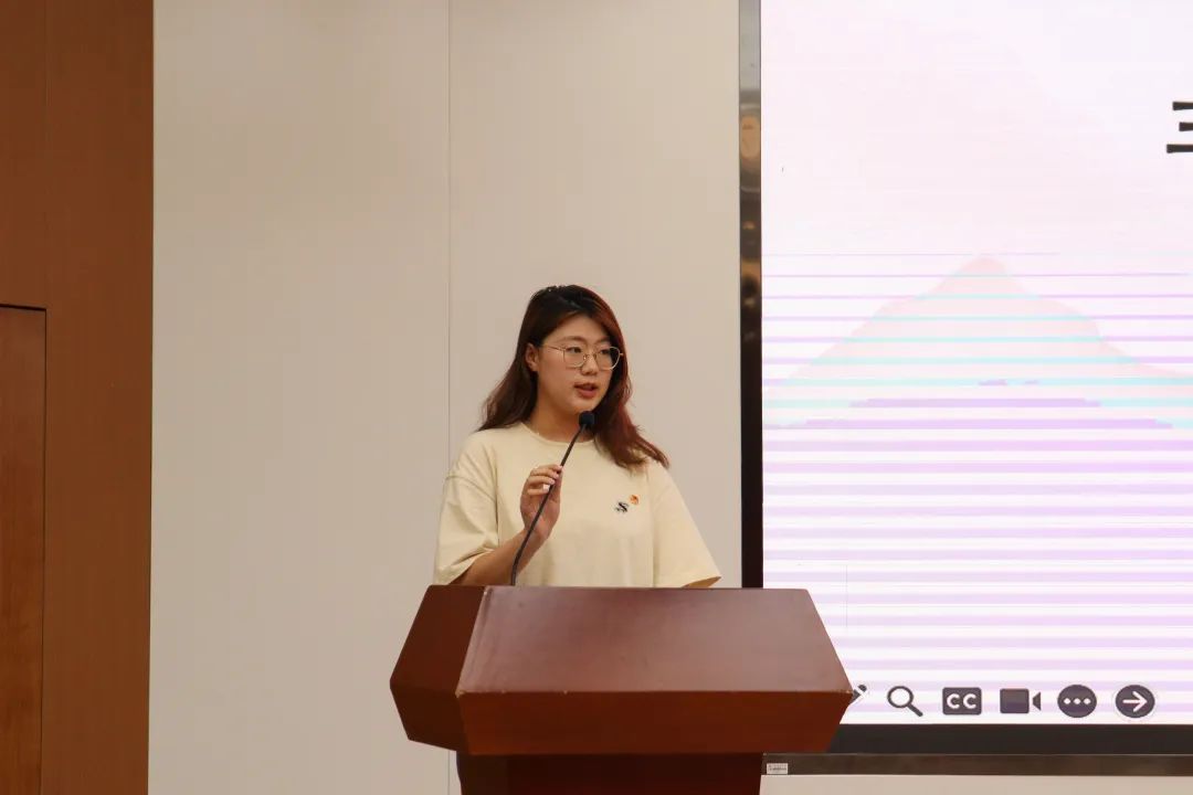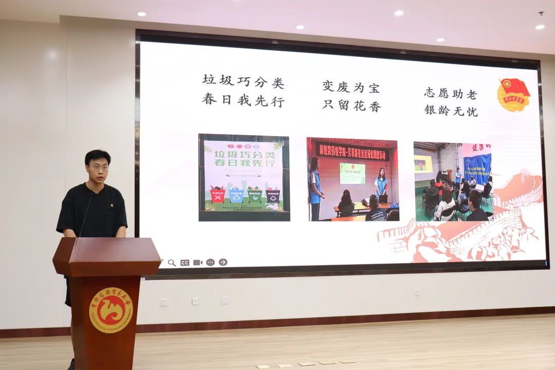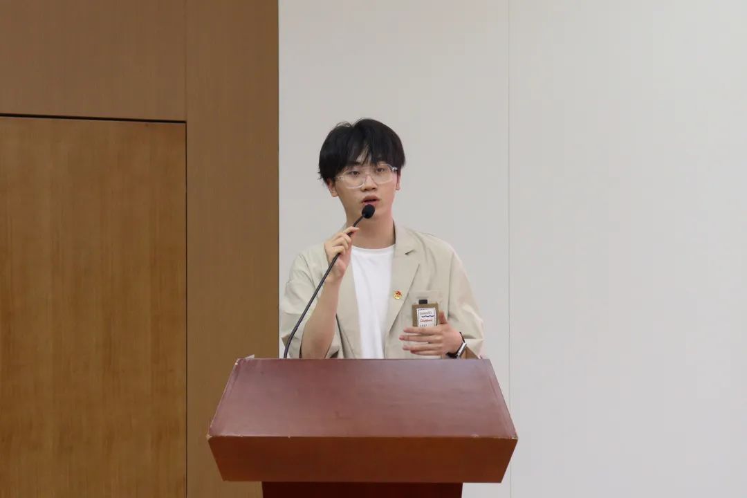 随后,分团委志愿服务部部长魏嘉祺进行与芳菲路社区区域化团建的主题分享。他从团建活动目的,活动前期准备以及三次活动经历进行了阐述。通过他的阐述,与会人员了解了活动目的——聚焦团员青年成长成才需求,积极发挥实践育人机制,加强区域联建,赓续传承红色基因,建设劳动特色的主要思想内核,并认识到作为当代团员同时也是青年志愿者,要树立好自身形象,严格要求自己,身体力行,才能更好地实现自身价值与社会价值。