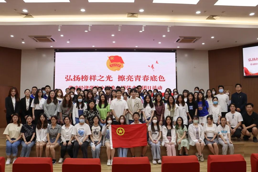 “学所以益才也,砺所以致刃也。”为开展深入学习贯彻习近平新时代中国特色社会主义思想主题教育,践行党的二十大精神,6月8日晚上,蜜桃视频 分团委开展“弘扬榜样之光 擦亮青春底色”入团仪式暨主题团日活动。此次活动旨在吸纳优秀青年为共青团注入新活力,带领广大团员青年重温入团誓词,感悟榜样先进事迹,坚定理想信念,进一步增强团组织的凝聚力与向心力。参与本次活动的有劳经经济学院分团委副书记(主持工作)韩国晟,学院兼职辅导员王子铮,学院分团委副书记朱佳颖以及团员青年代表。活动由分团委组织部曹楠楠主持。