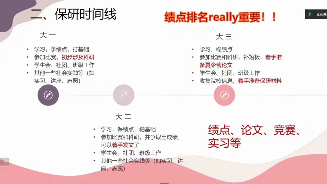 在此次分享中,同学们获得了诸多保研经验的精炼概括,学长学姐的分享干货满满,相信同学们能够将所学应用到实践,有所收获。