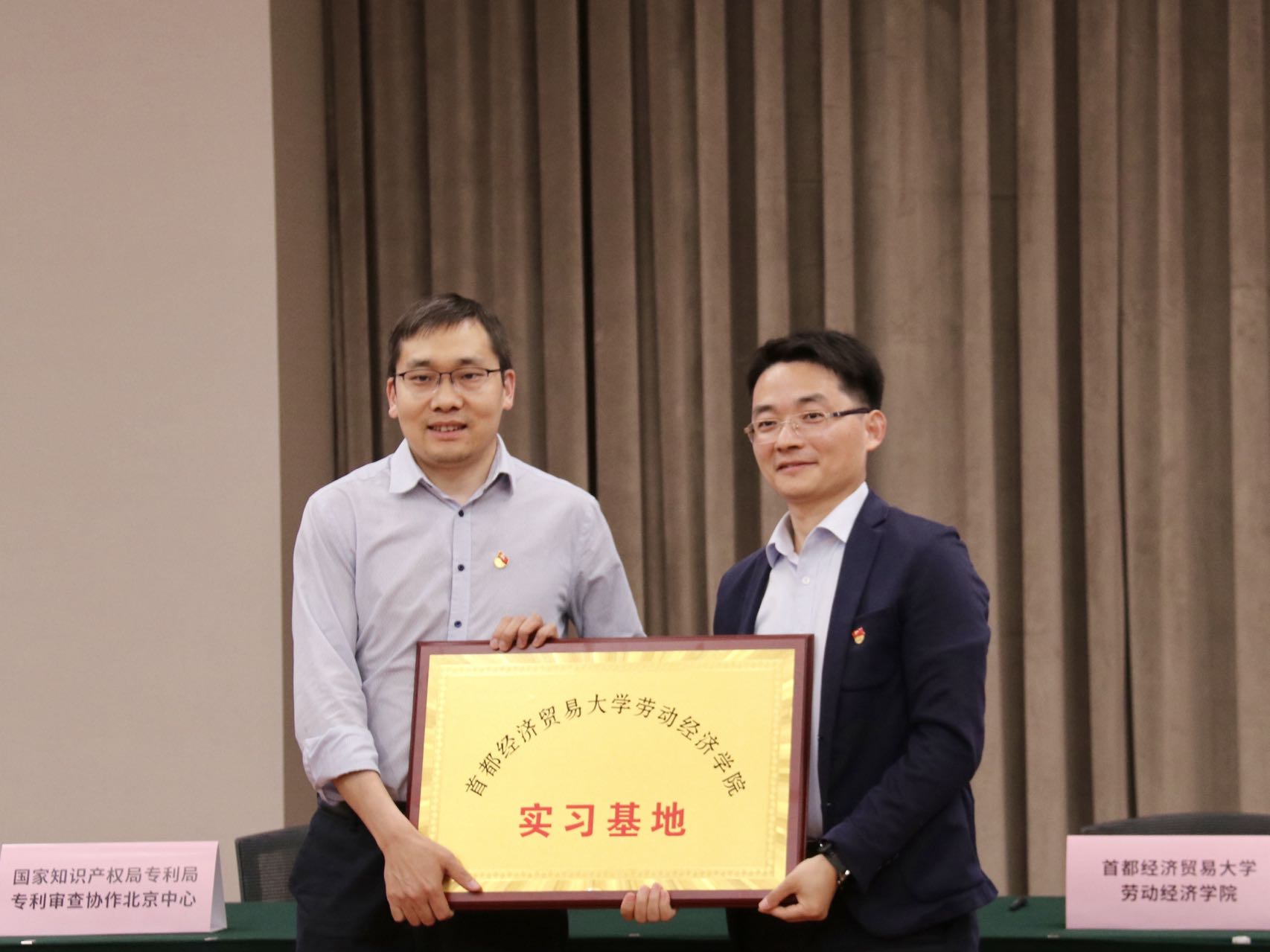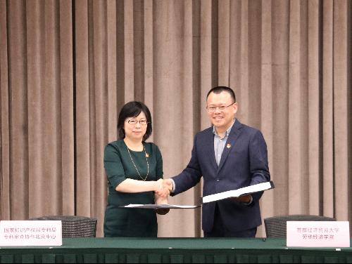 本次活动是三所单位共同开展的联学联建工作,以此为契机,蜜桃视频 党委书记冯博与专利审查协作北京中心党委书记、主任郭雯签订了校外实践基地合作协议。他们谈到,通过发挥区位优势加强三方党建、业务职能、人才培养等多方面建设合作。