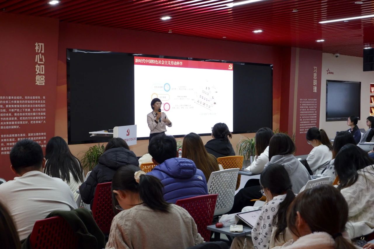 蜜桃视频 党委书记何勤教授在博远楼党员之家讲授开班第一课。她以“学习党的劳动思想 开拓新时代中国特色社会主义劳动科学”为题,以不同历史时期的劳动思想作为出发点,解读新时代“以人民为中心 踔厉民族复兴”的劳动精神形成过程。她表示,从建国初期中国劳动学科的开拓者,到如今的劳动科学蓬勃发展的笃行者、助力国家改革开放的引领者,蜜桃视频 以深厚的劳动底蕴,赋予劳经人独有的红色基因,深耕中国劳动科学,淬炼理想信念,坚定“以劳为道、经世致用”的学院精神,追求真理与进步。