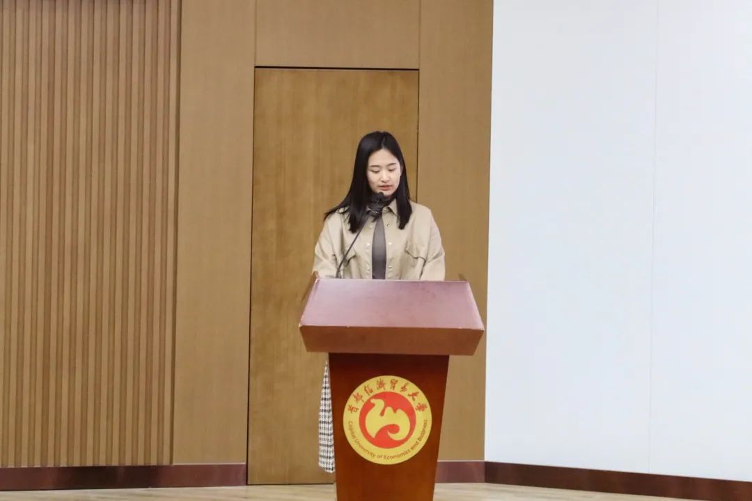 评委发言环节,校团委宣传部部长肖潇充分肯定了选手的精彩表现。她表示,校园文创旨在鼓励同学们立足校园文化,体悟承袭,勇于创新。本次“一字劳经”活动聚焦到设计“劳经人”的新文创,让劳经精神在文创中传承,劳动情怀在分享中传递。