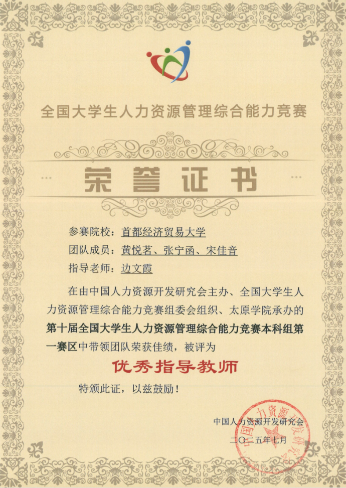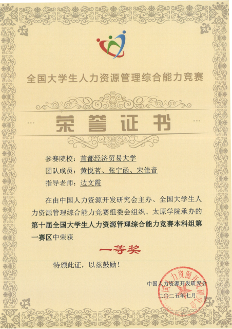 6月7日,第十届全国大学生人力资源管理综合能力竞赛本科组第一赛区(华北赛区)在山西太原落下帷幕。蜜桃视频 选派的5支参赛队伍均获奖,其中,一等奖1项(晋级全国总决赛)、二等奖1项、三等奖3项。