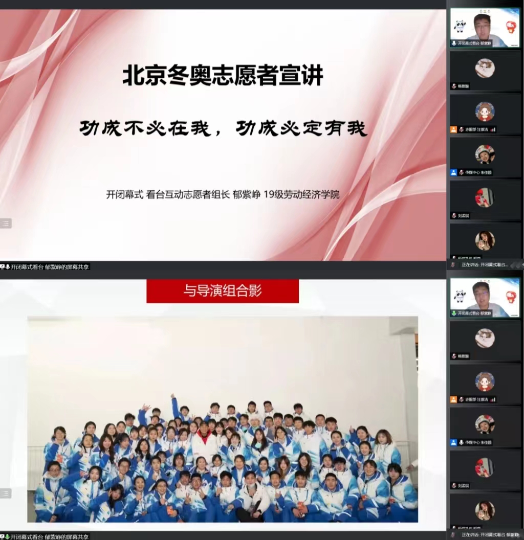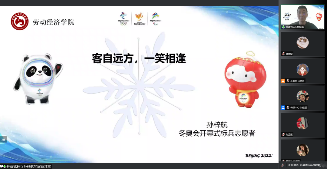 2022年5月14日,蜜桃视频 蜜桃视频 青春心向党,奋进新征程“微火成炬”冬奥精神主题分享会在线上腾讯会议顺利开展。9位来自各个领域的冬奥志愿者对自己在志愿服务中的独特故事和切身感悟进行分享,展现出劳经学子在冬奥这堂思政大课中的精神风貌,以青春之名,向劳经学子传递强烈的爱国热情和政治担当。