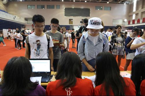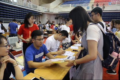 上午七时许,学院各新生班级班主任、班级助理以及学院学生组织部分成员来到体育馆内精心布置迎新摊位,再三核对应发资料、核实新生报到资料、确认学校各项通道和服务台的具体位置,精神饱满地等待着新面孔们的到来。