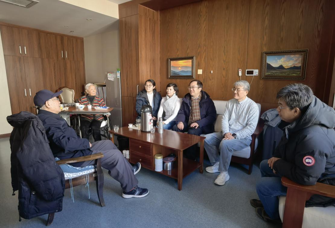 在燕郊康养中心,领导班子成员看望了97岁高龄的退休教师刘祖焄。详细询问刘老师的生活和身体健康状况,感谢她为学院作出的突出贡献。