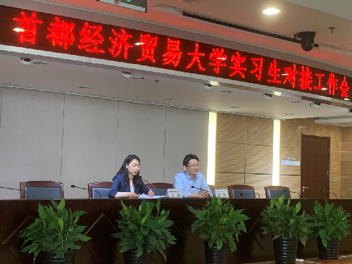 5月22日上午,实习生对接工作会在西城区社保大厦进行。西城区人社局副局长区磊、各科室实习指导人员,我院副院长范围、带队老师毛宇飞、于帆,20级学生32人参加会议。区磊副局长对既往与首经贸的良好合作表示肯定,介绍了西城区人社局的概况和工作内容,表示期待同学们带来新活力、新思考,并请各位实习指导人员在实质性工作中认真指导同学。范围副院长也向西城区人社局与会工作人员介绍了学院专业分布及学科建设情况,蜜桃视频 在劳动科学方面培养系统完善,与西城区人社局工作内容十分契合。对于同学们即将开始的实习工作,范围副院长希望同学们能够由学生身份转变为职业角色,遵守专业实习相关要求,提高站位,代表首经贸在外形象,使课堂上的专业知识能够在实习实践过程中得到检验。学生代表徐雨菲倡议同学们遵守实习单位规定,在实践中能够有所收获。
