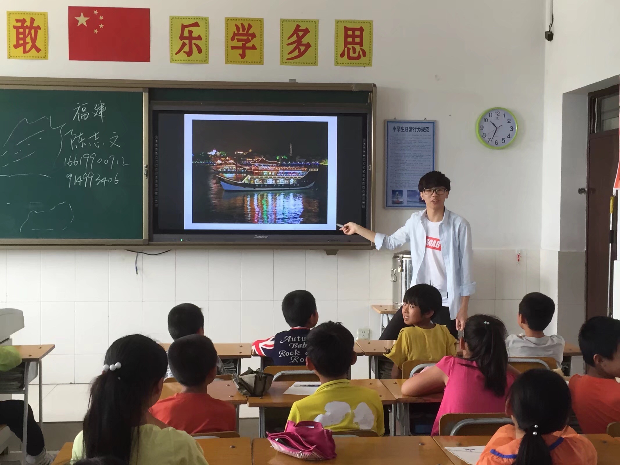 齐梓豪的街舞、橄榄球课程,将孩子们从未接触过的文体活动带给了他们。陈志文的“走进闽南”,则发挥了他的家乡优势,让孩子们感受南北方文化的差异。李庆雄的“旅游地理”,向孩子们分享了他在旅游中的奇闻轶事,将祖国大好河山的景色呈现在孩子们面前。贺芷涵的“走进海南”,通过教孩子们画椰子树,画海南地图,让孩子们体验了热带风情。鞠鹏浩的游戏活动,则用孩子们最喜欢的方式,他们带来了欢声笑语。