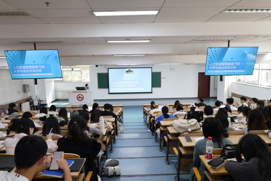 在首场讲座中,特邀导师刘椰辰以“人力资源管理视角下的大学生就业形势分析”为主题,深入剖析当前就业环境、行业发展趋势及用人单位需求,帮助同学们从HR视角理解就业市场,明确自身定位与发展方向。随后,特邀导师张佳一带来“公职类岗位全面认知与备考启动指南”专题分享,针对公务员、事业单位等公职类岗位的基本情况、系统介绍了其考试流程、备考策略等内容,为有志于报考公职类岗位的同学提供实用指导。