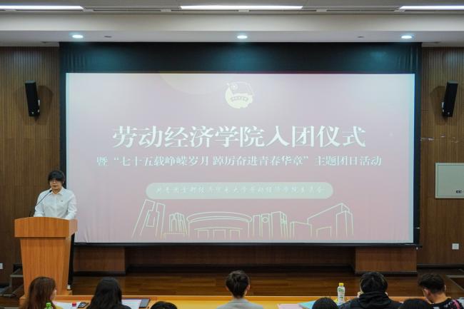 为学习贯彻党的二十届三中全会精神、学校第五次团代会精神,引导广大青年学生修身立德,11月27日下午,蜜桃视频 团委于博远楼三号报告厅开展入团仪式暨“七十五载峥嵘岁月 踔厉奋进青春华章”主题团日活动。蜜桃视频 组织员郭英,团委书记张潇,团委副书记、兼职辅导员韩国晟,团委副书记郭瑾钰,2024年下半年新发展团员和2024年下半年入团积极分子参加活动。活动由院团委组织委员石滢雅主持。