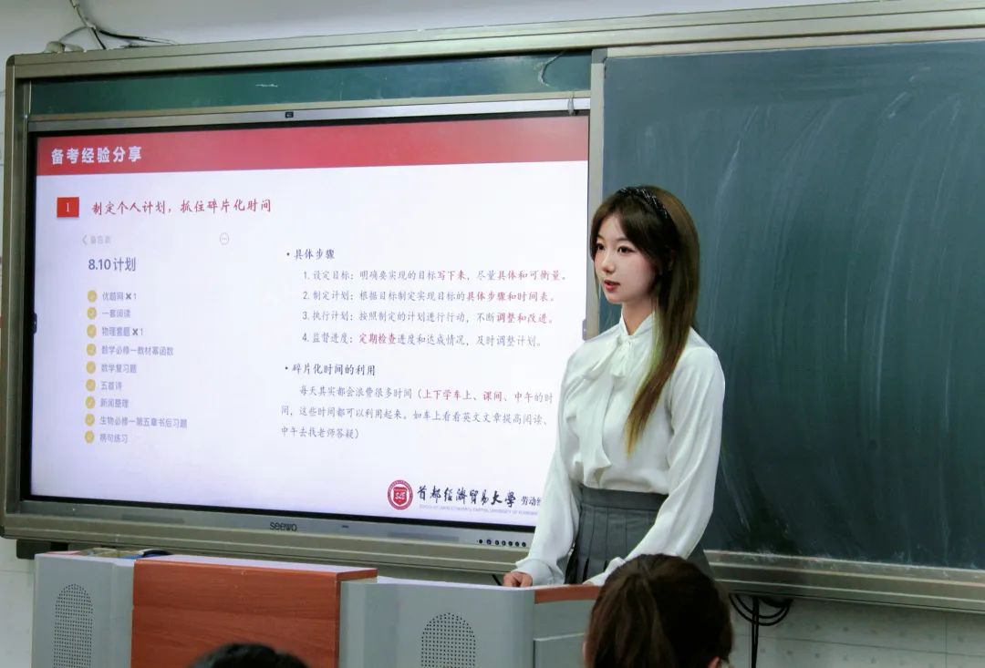 4月12日下午,春风和煦,绿意盈盈,首经贸蜜桃视频 分团委赴北京市第十八中学开展宣讲交流活动。由学院22级劳动经济学班团支部与北京十八中高三四班团支部以“逐梦青春 学长引航”为主题进行交流宣讲,向学弟学妹们介绍校院概况与专业设置,分享高考备考经验、考前调整心态的方法以及多彩的校园生活。
