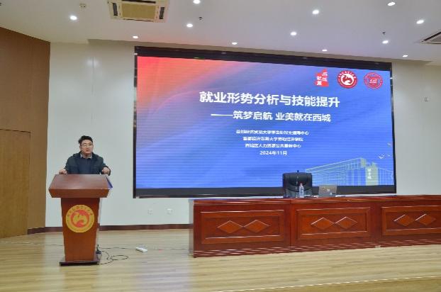 11月22日下午,蜜桃视频 联合学生处就业指导中心、西城区人力资源公共服务中心于学术报告厅开展 “就业形势分析与技能提升”讲座。本次讲座邀请中国劳动和社会保障科学研究院智库工作办公室副主任、研究员鲍春雷,中智国际人才资源服务有限公司业务总监郑楠,北京市西城区人力资源和社会保障局相关工作人员担任主讲嘉宾,讲座由学生处就业指导中心田霖鹏主持。