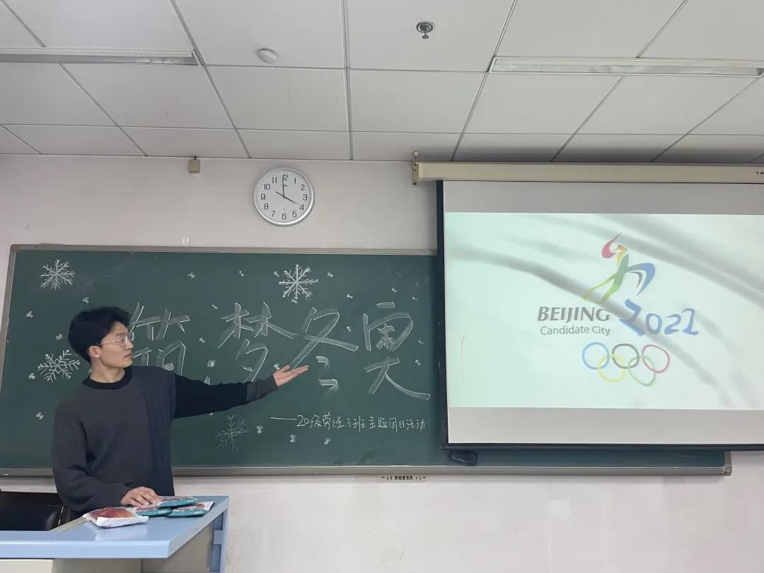 之后团支书李俊硕同学以奥林匹克精神为引入点,向同学们详细介绍了冬奥会的主要精神、创立意义、吉祥物、冰雪运动等,让大家初步了解此次北京冬奥会的情况。奥林匹克精神期望建立一个没有任何歧视的社会,培养人们之间真诚的理解、合作和友谊、承认在平等的条件下为获得荣誉的公平竞争,为人们在社会的其他领域树立了一个独特而光辉的榜样。冬奥会的主题口号是“一起向未来”,“一起”展现了人类在面对困境时的坚强姿态,指明了战胜困难、开创未来的成功之道。“向未来”表达了人类对美好明天的憧憬,传递了信心和希望;“一起向未来”是态度、是倡议、更是行动方案,倡导追求团结、和平、进步、包容的共同目标,是更快、更高、更强、更团结奥林匹克精神的中国宣扬,表达了世界需要携手走向美好未来的共同愿望。这是中国向世界发出的诚挚邀约,传递出14亿中国人民的美好期待:在奥林匹克精神的感召下,与世界人民携手共进、守望相助、共创美好未来。