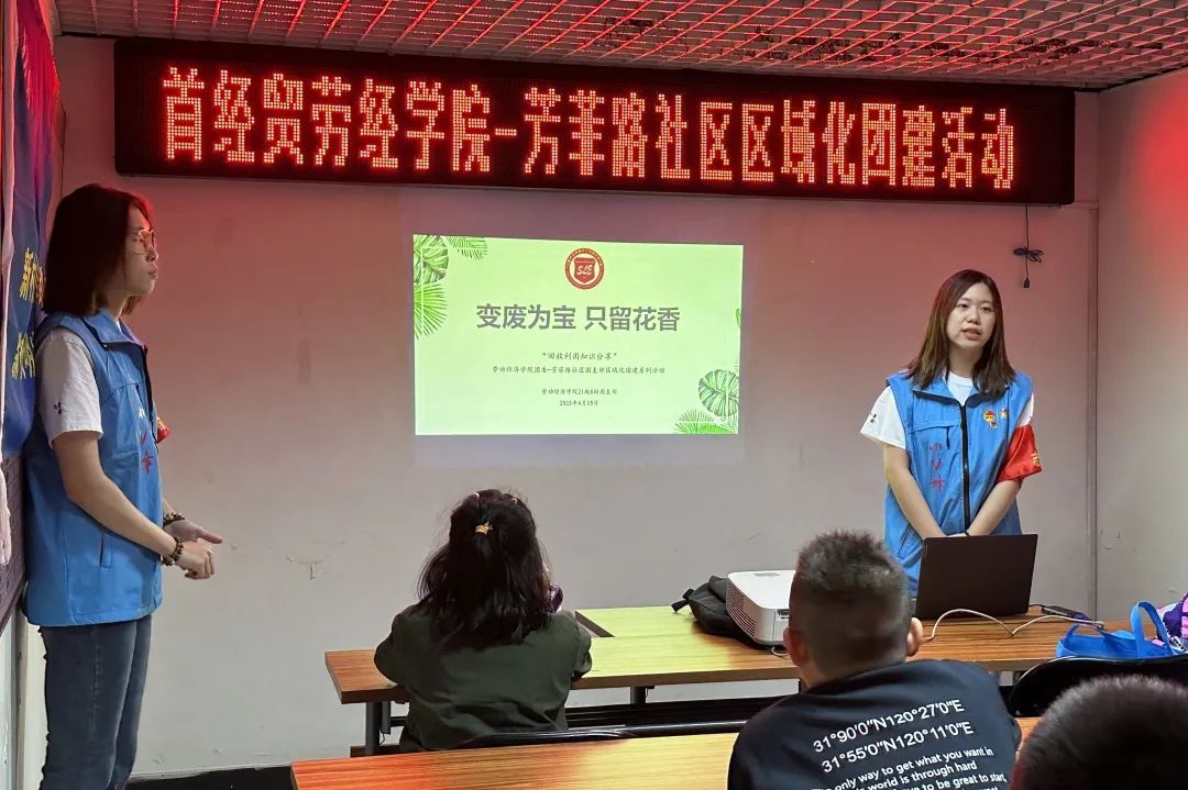 在此次“变废为宝,只留花香”活动中,团员们为青少年儿童讲解废物利用变废为宝的相关知识,带领小朋友们亲身参与到环卫工作中,用专业的知识和认真的态度赢得了社区工作人员和家长们的一致好评。作为新时代大学生团员不仅自身要树立环保意识更要为青少年普及环保知识,宣传环保理念,为实现可持续发展贡献青年力量。