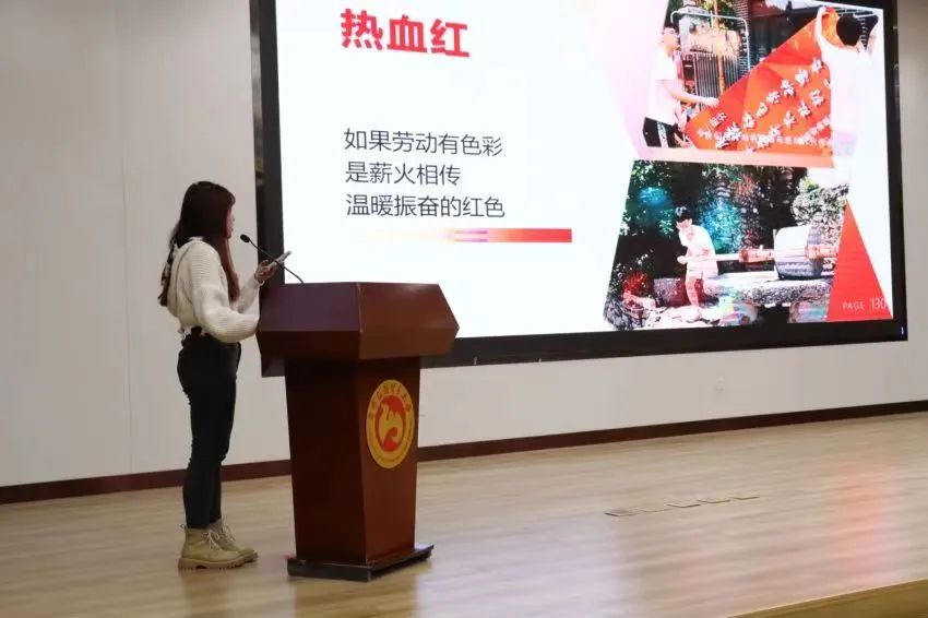 决赛伊始,学院专职辅导员魏小淳回顾“一字劳经”创办历程,细数历届大赛文创精品,指出参赛选手以精美的作品呈现出他们对劳动精神的深刻理解,红色劳动思想早已在每一个劳经学子的心中生根发芽,也是学院的底色,它世代谱写,历久弥新,充分彰显出传承的力量。